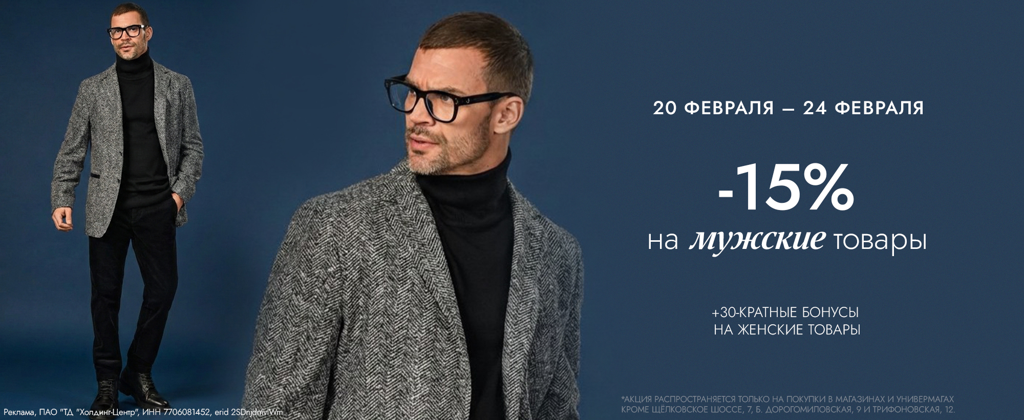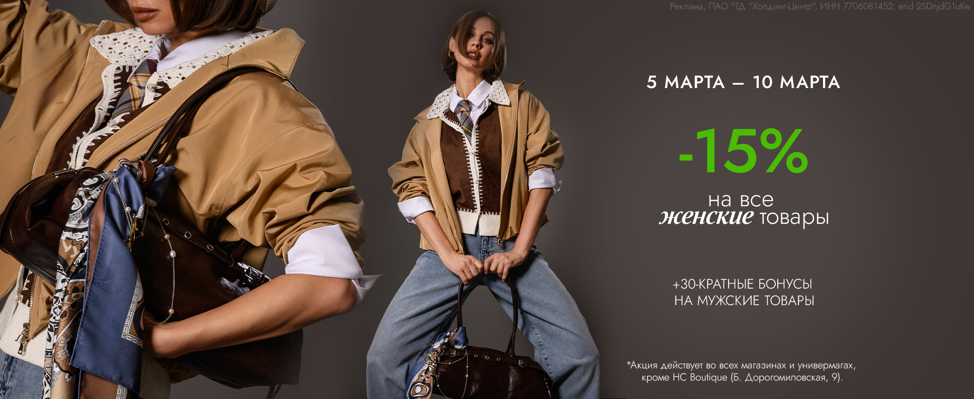 В универмаге представлена одежда, обувь и аксессуары более чем 200 европейских брендов, среди них Baldessarini, Boss, Calvin Klein, Emporio Armani, Gerry Weber, Taifun, Giorgio Grati, Hugo, Jog Dog, JOOP!, Karl Lagerfeld, Monari, Marc Cain, Pezzo, Pinko, Luisa Cerano, Premiata, Patrizia Pepe, Twinset, Coccinelle и многие другие.