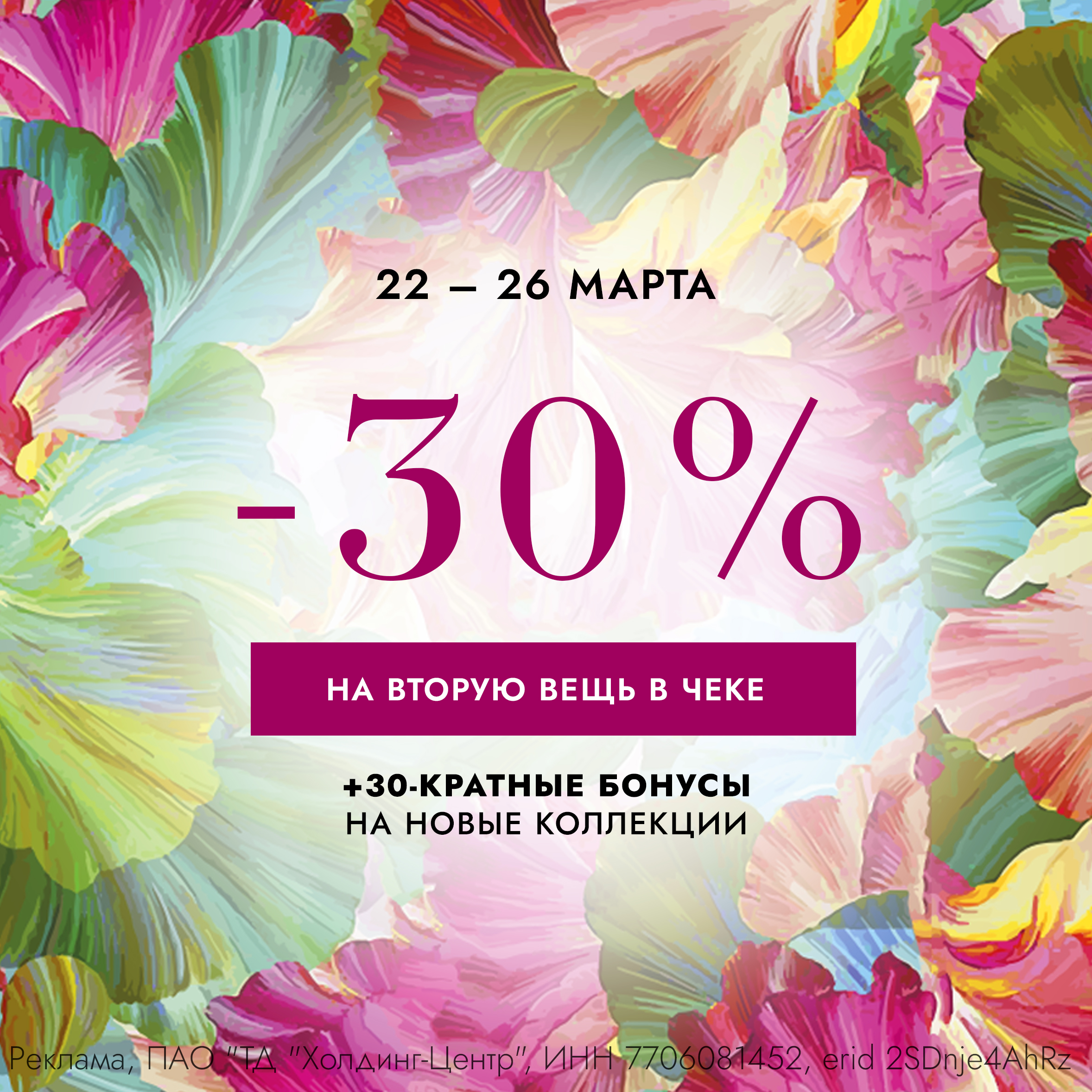 Скидка -30% на вторую вещь в чеке + 30-кратные бонусы на новые коллекции!