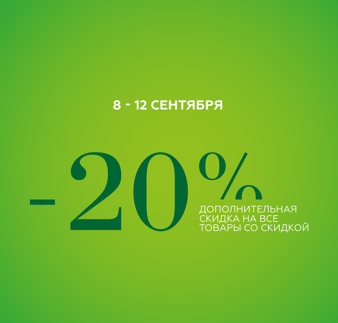 Дарим дополнительную скидку 20% на товары со скидкой с 26 по 30 августа!